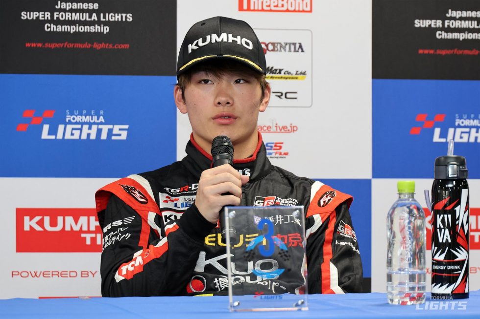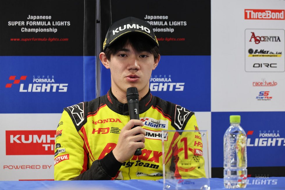 「このもてぎでのスーパーフォーミュラ・ライツは公式予選は特に大事だと思っていましたし、3番手ではあったものの、前に2台いたのでスタート、もしくはスタート直後しか仕掛けられないだろうと狙っていました。ただ、トップまでは行けずに2番手で、ペースは野村選手の方が良かったので、今はまだ敵わない状況だと感じました。明日の2レースに向けて改善する必要があると思っています。セーフティカーラン明けのリスタートも狙ってはいましたが、ダウンフォースが非常に大きいクルマなので、そう簡単に仕掛けることができませんでした。第17戦に向けてペース改善には取り組んでいきますが、スタート直後しかバトルはないと思っているので、特に意識してレースに臨みたいと思っています」