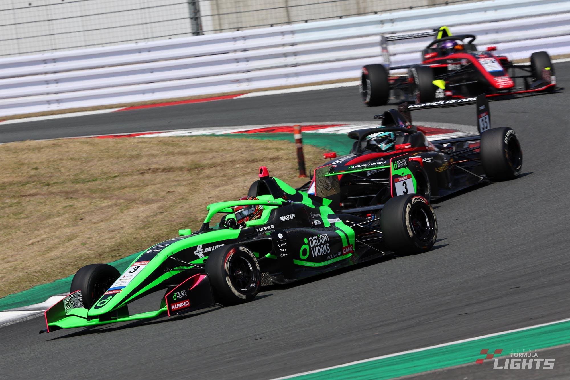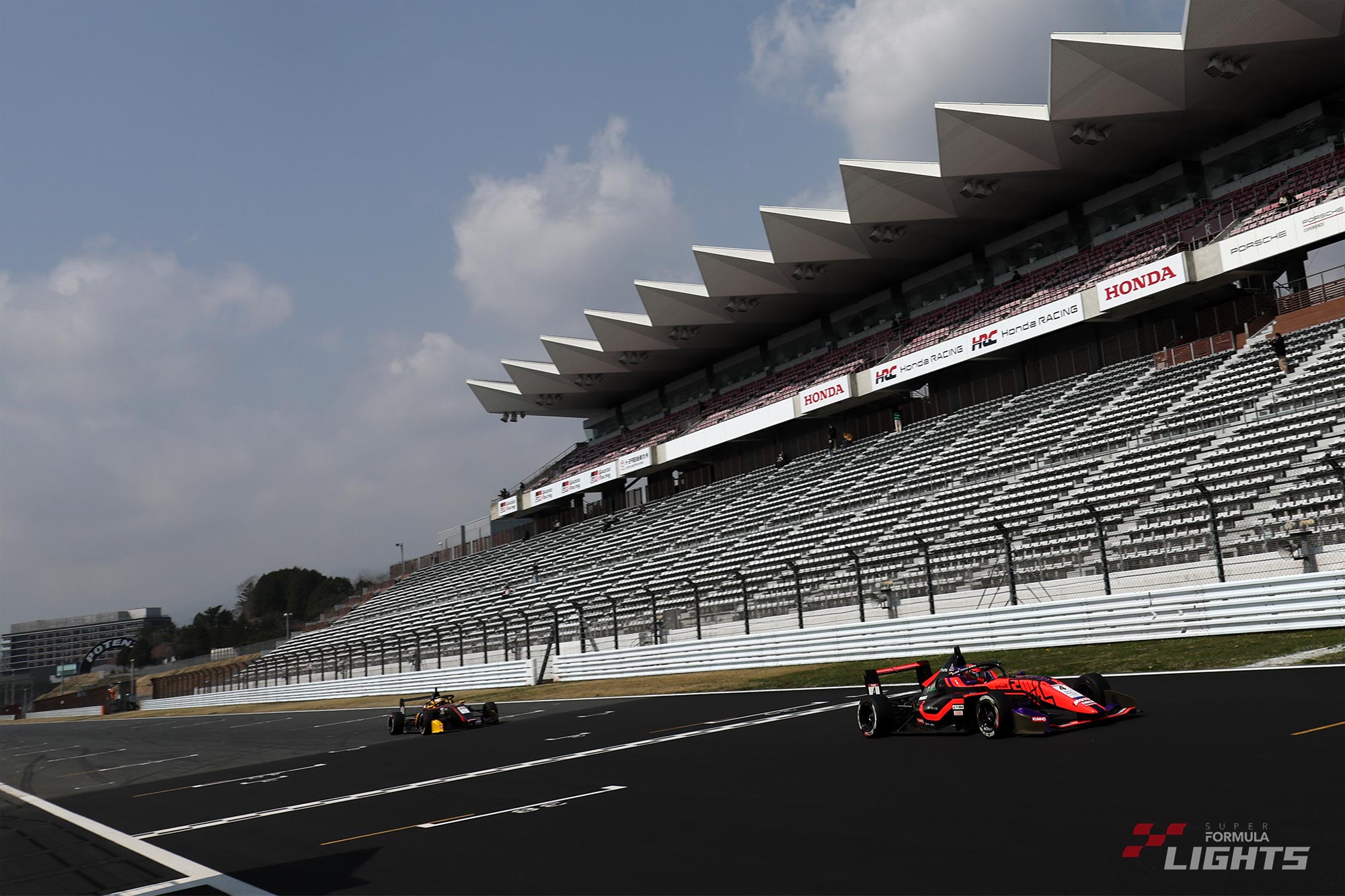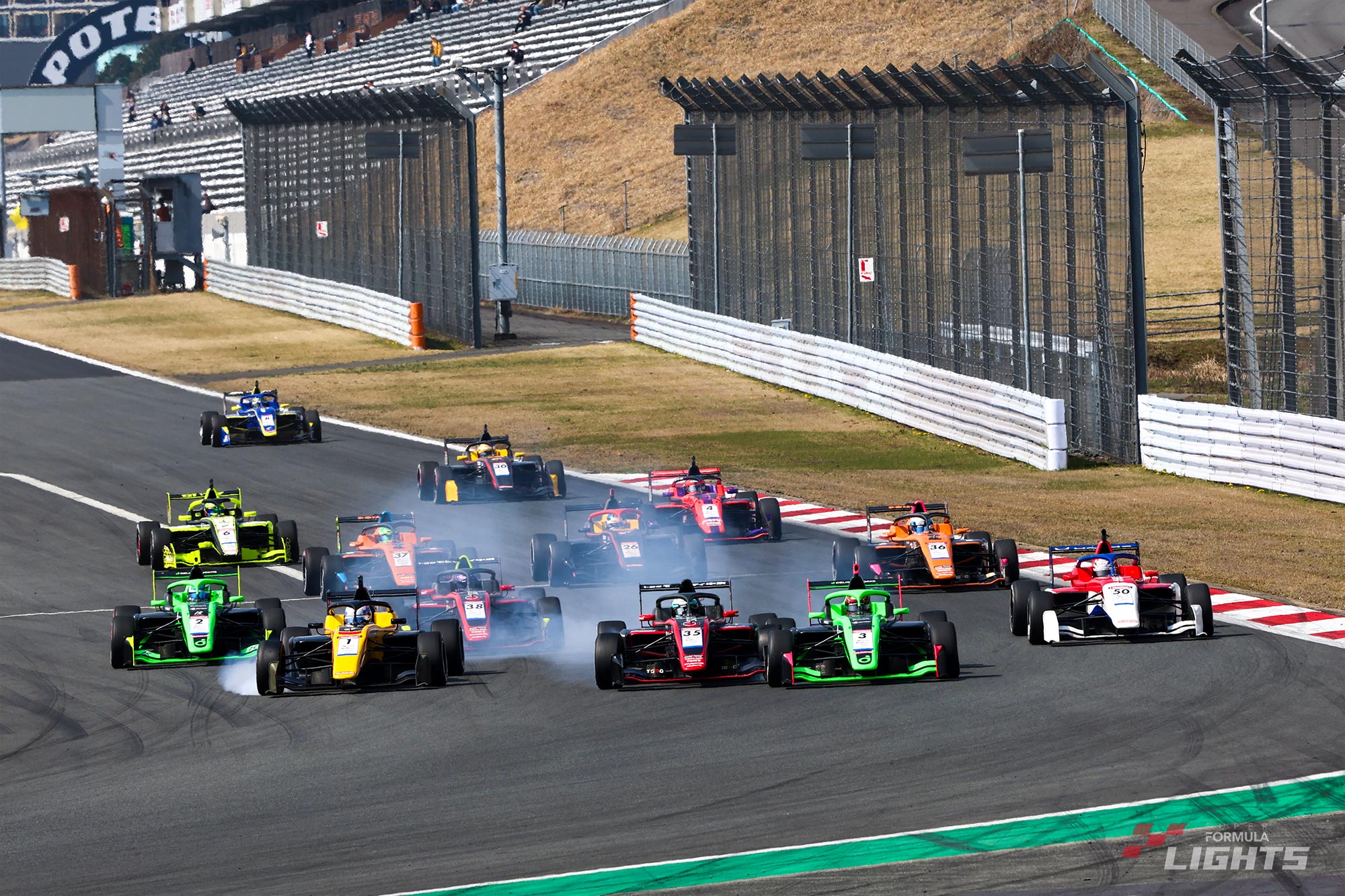 3月26日(木)に専有走行がスタートした全日本スーパーフォーミュラ・ライツ選手権第1大会は、第2戦/第3戦の決勝レースが行われる3月29日(日)を迎えた。この日の富士スピードウェイは晴天で春めいた陽気に恵まれ、午前9時45分にドライコンディションのもと第2戦のフォーメーションラップがスタートした。