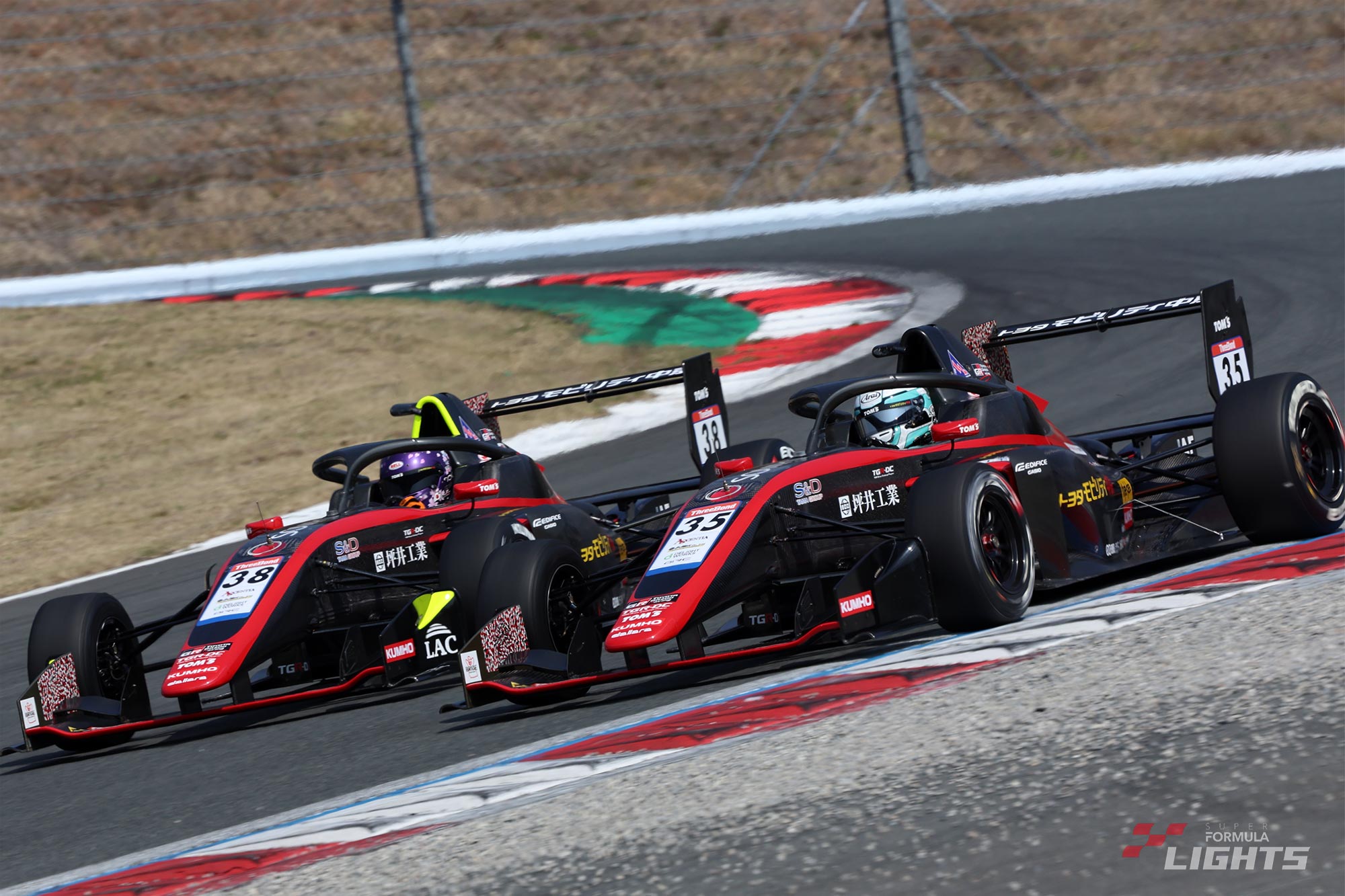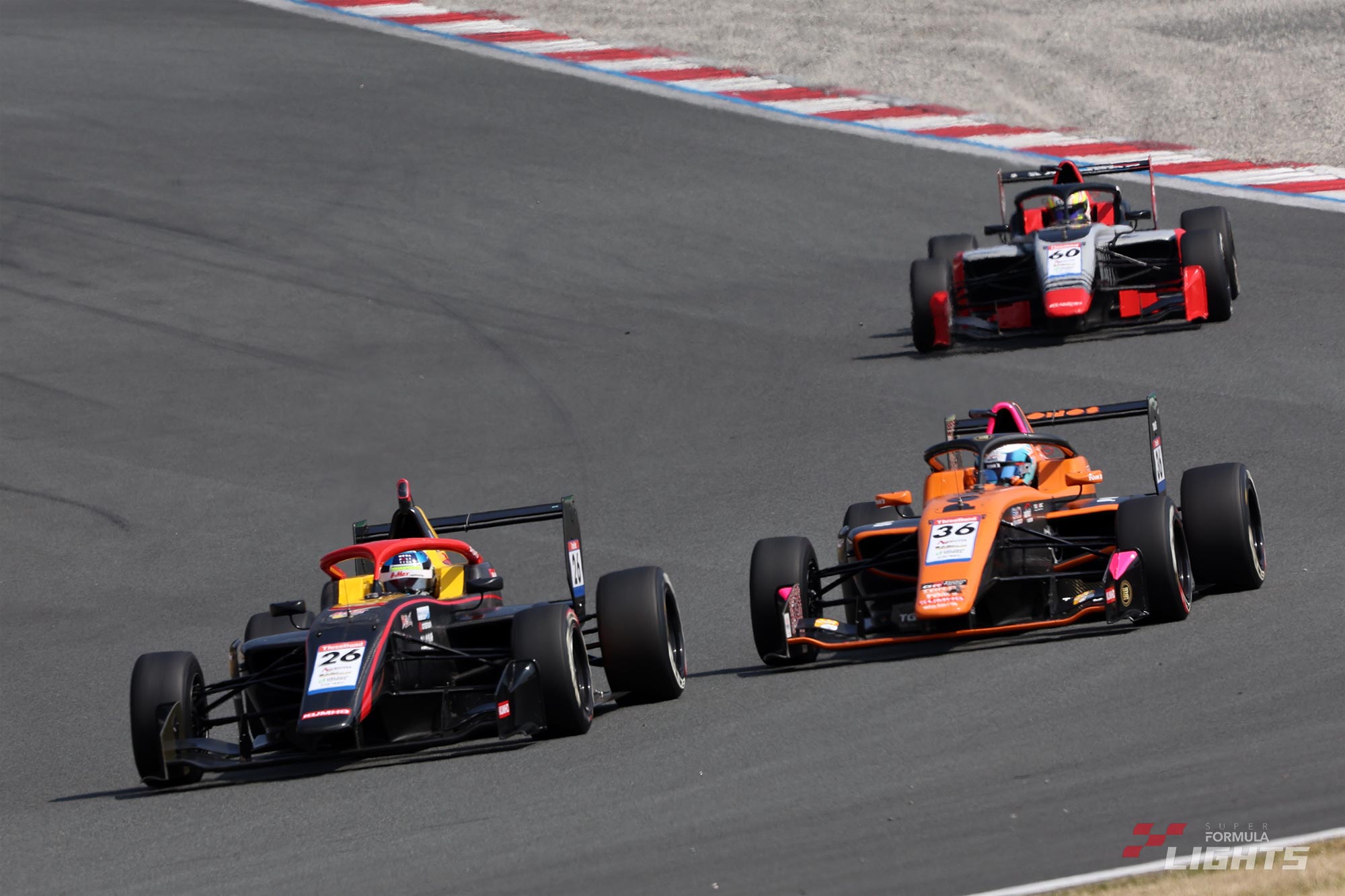 その後方では、オープニングラップに6番手スタートから順位を上げた卜部和久(DELiGHTWORKS)と5番手スタートの新原光太郎(HFDP WITH B-MAX RACING)、アクシャイ・ボーラ(PONOS Racing TOM'S SFL)のバトルが展開され、さらにその後方ではオスカー・ブルツ(PONOS Racing TOM'S TGR-DC SFL)、佐藤凜太郎(B-MAX ENGINEERING 324)、熊谷憲太(LMcorsa OTG 320)による三つ巴の戦いが繰り広げられた。