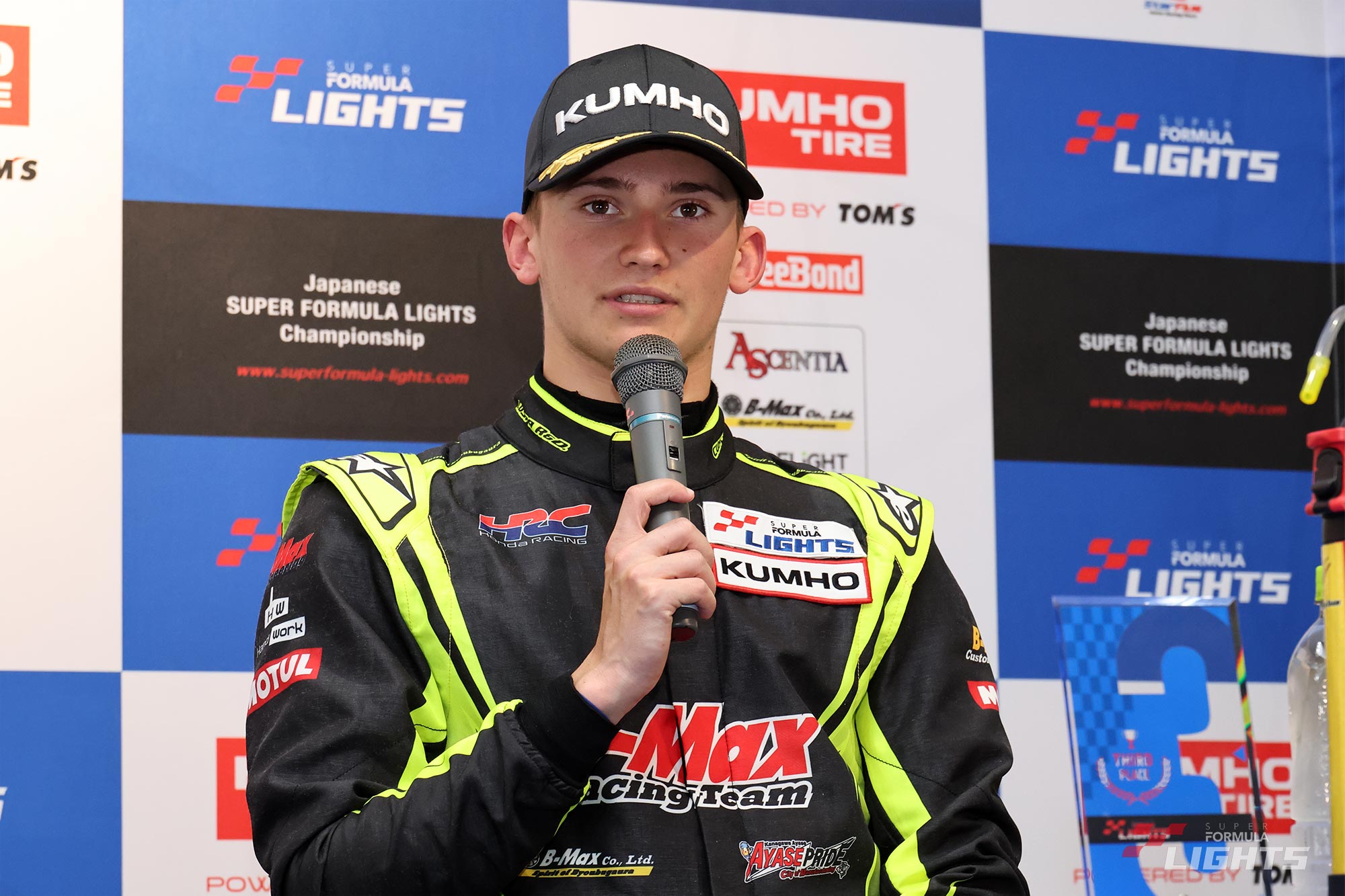 「このレースも表彰台獲得で終えられたのは良かったけれど、スタートがうまくいかずにポジションを下げてしまったし、その直後はTGRコーナーで押し出される形で5番手まで後退してしまった。そこからオーバーテイクして3番手まで取り戻せたのはポジティブなことだけど、もったいなかったと思う。レースでオーバーテイクできたことや、ダーティエアの中で戦う経験が積めたことは前向きにとらえたいね。スーパーフォーミュラ・ライツでの最初の週末に、3連続表彰台を獲得できて、B-MAX RACING TEAM、HRCに感謝を伝えたい。次戦のオートポリスはまだ走った経験はないけれど、シミュレーターなどで入念に準備していくつもりだ。しっかりとしたパッケージを準備して臨むことができれば、また良いレースウイークを過ごせると信じているよ」